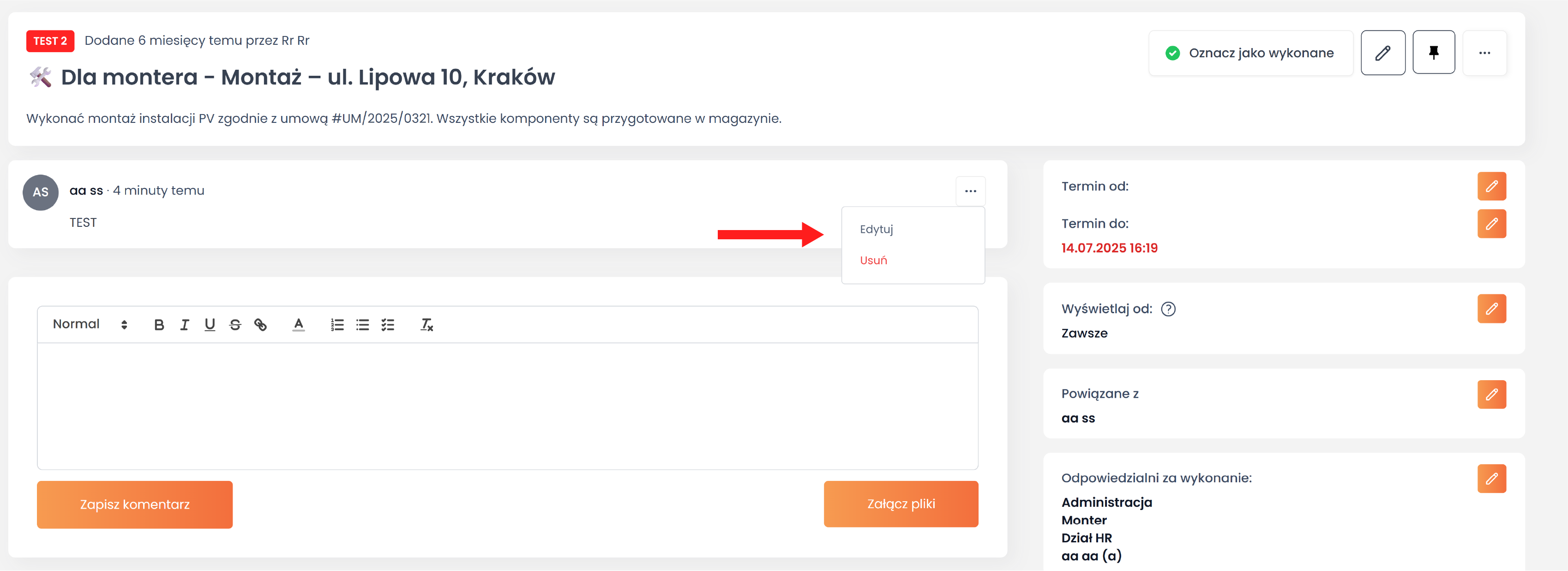 Użytkownik z tym uprawnieniem ma możliwość usuwania oraz edytowania wszystkich komentarzy dodanych w zadaniach, niezależnie od tego, kto jest ich autorem.