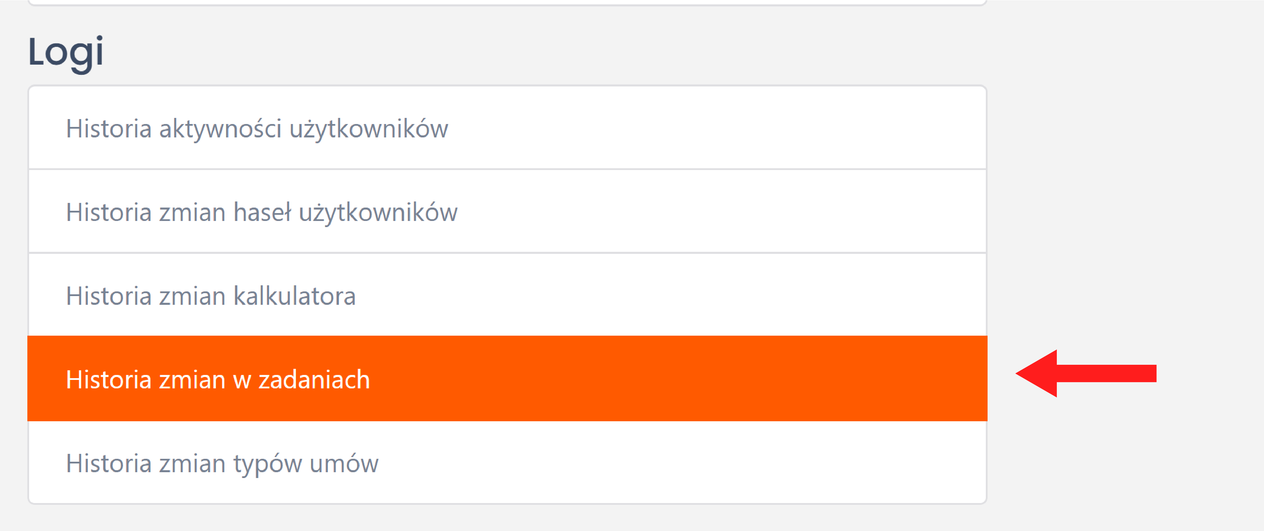 Moduł znajduje się w panelu administracyjnym w sekcji Konfiguracja -> Logi -> Historia zmian w zadaniach