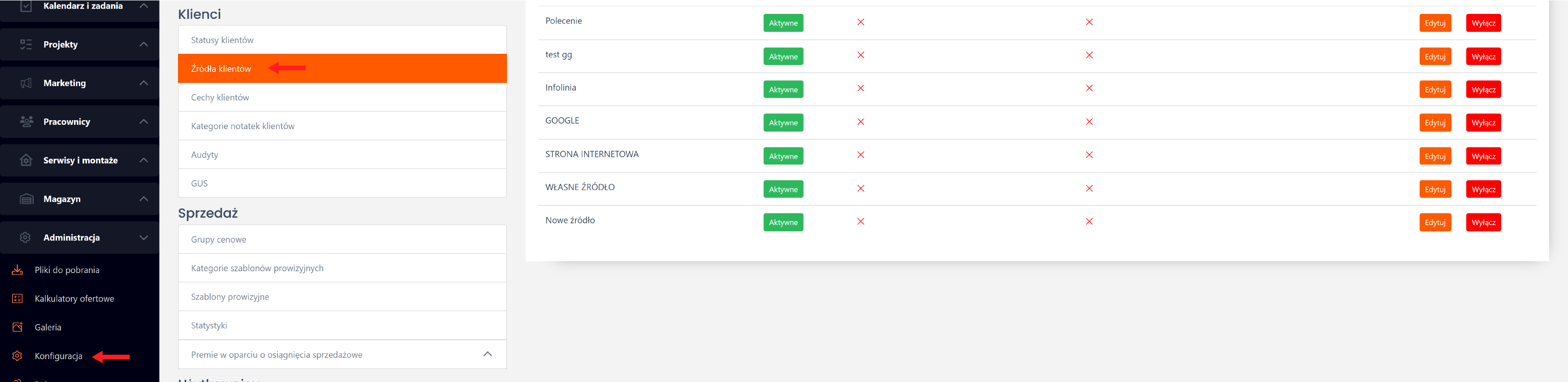 Konfiguracja jest dostępna w zakładce Konfiguracja -> Źródła klientów: