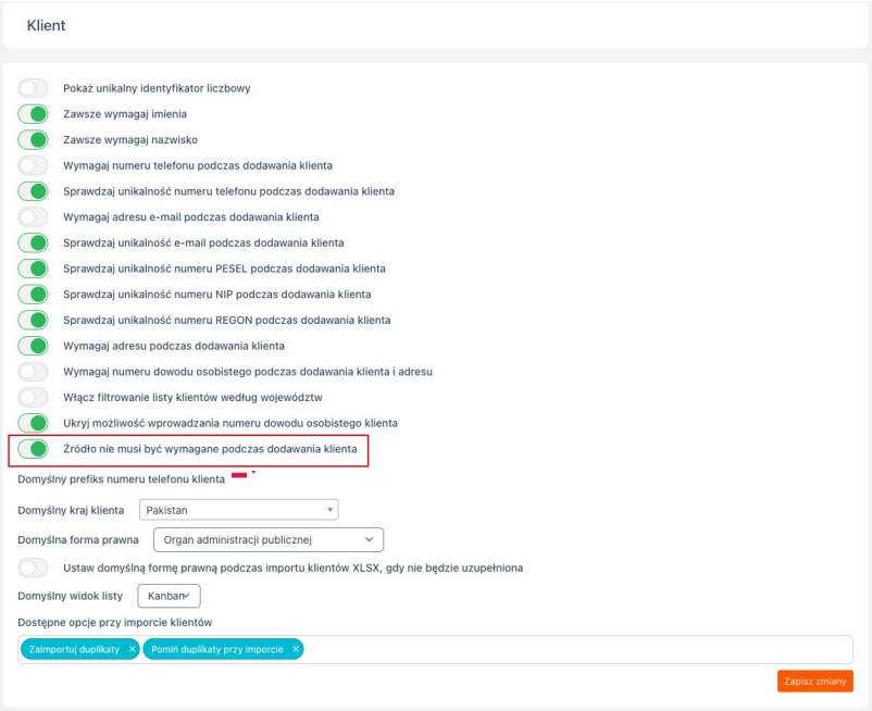 Źródło nie musi być wymagane podczas dodawania klienta