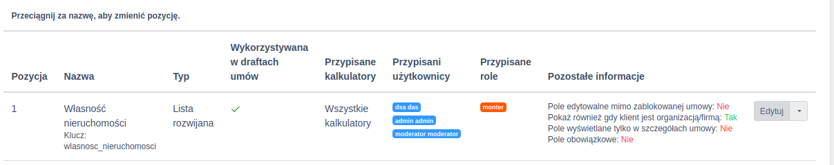 - Oznaczenia czy pole może być edytowalne mimo zablokowanej umowy