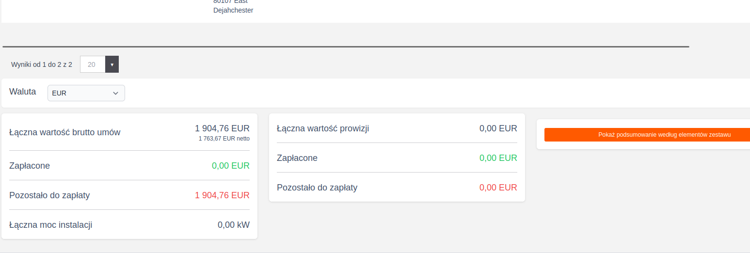 Podsumowania umów na widoku listy - więcej niż jedna waluta