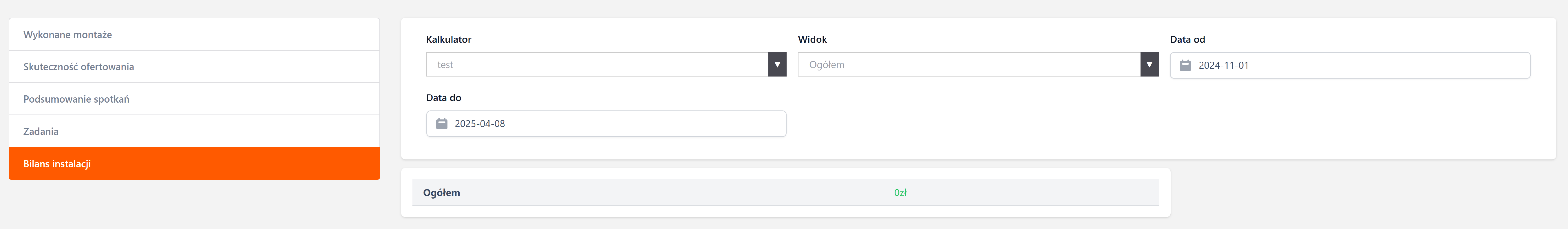 Uprawienie pozwala na dostęp do statystyki "Bilans instalacji"