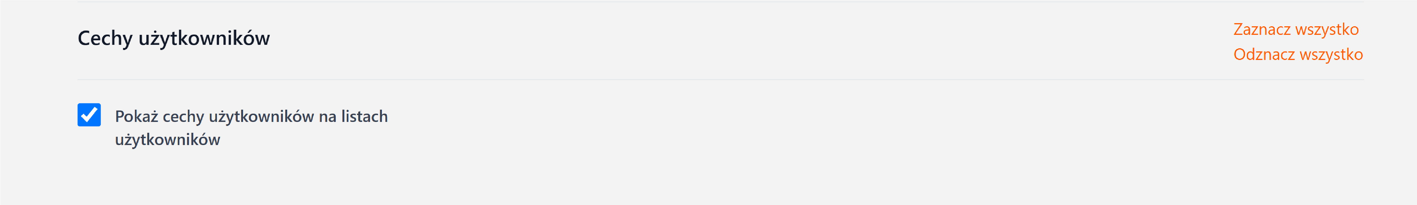 Użytkownicy posiadający uprawnienie mogą przeglądać przypisane cechy na listach użytkowników oraz wyszukiwać użytkowników na podstawie przypisanych wartości cech:
