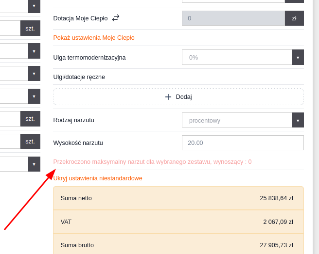 Ukryj komunikat o przekroczeniu maksymalnej wartości narzutu