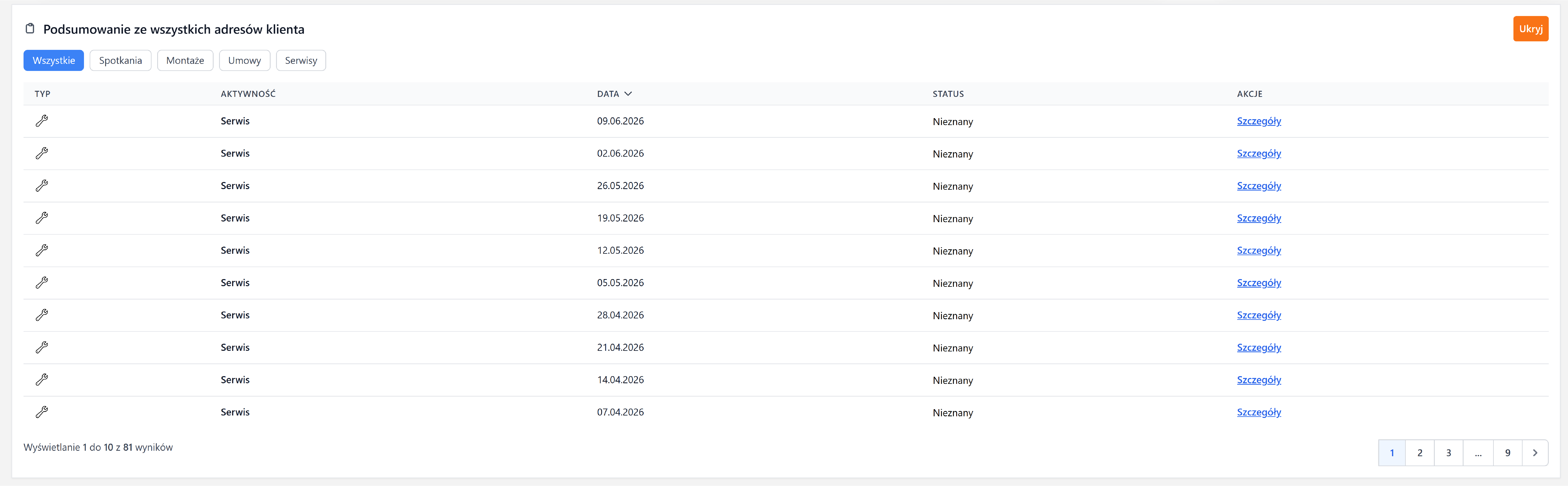 Pokaż podsumowanie ze wszystkich adresów na karcie klienta