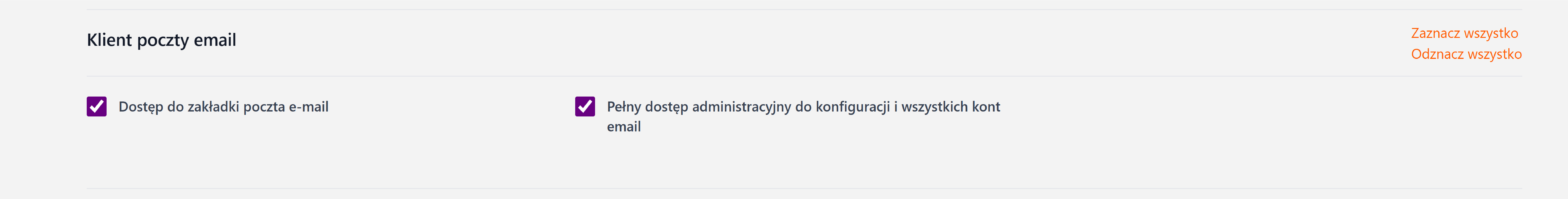 Uprawnienie umożliwia pełną konfigurację kont e-mail oraz zarz ądzanie wszystkimi skrzynkami w systemie.
