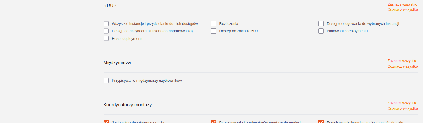 Uwaga dostępność danych uprawnień zależne jest również od wykupionych modułów dodatkowych.