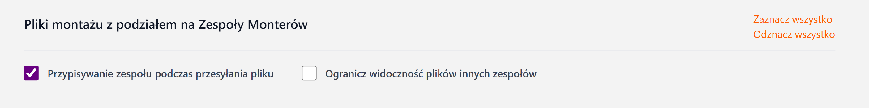 Możliwość przypisywania plików do konkretnych zespołów monterów podczas ich przesyłania: