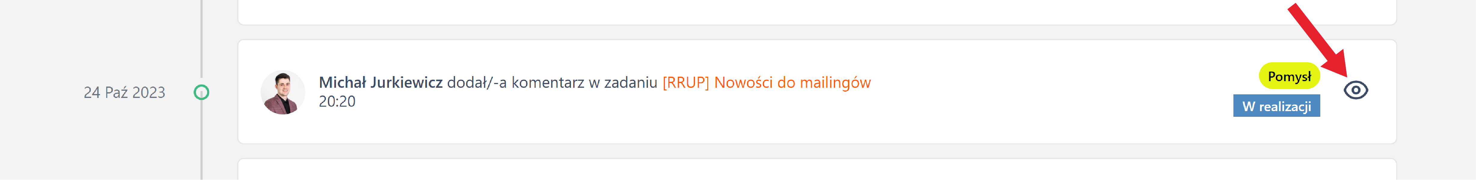 - powiadomienie w dzwoneczku (można wyłączyć we własnej konfiguracji powiadomień)