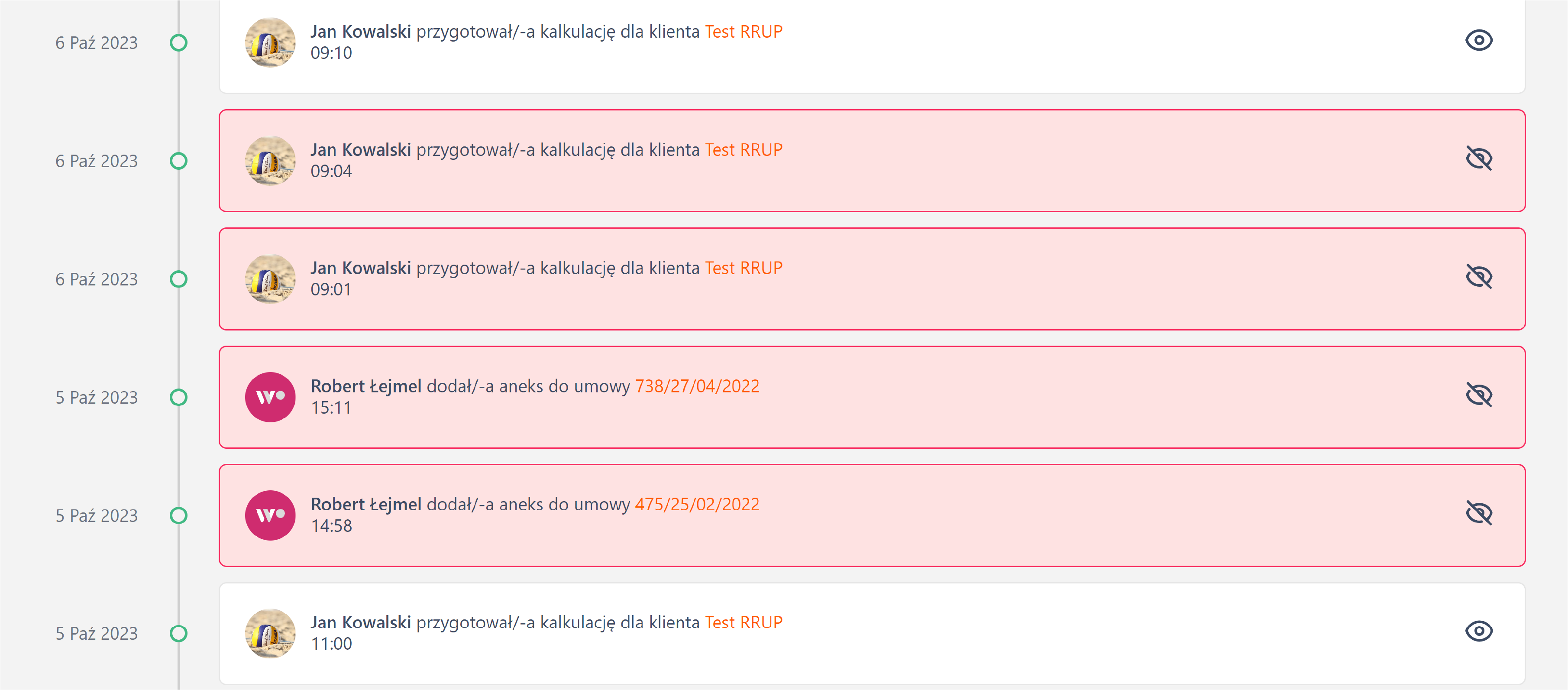 | Organizacja powiadomień | Powiadomienia są wyświetlane w jednym ciągu, chronologicznie, bez kategoryzacji | Powiadomienia są grupowane na podstawie kryteriów (zadania/umowy/klienci) |