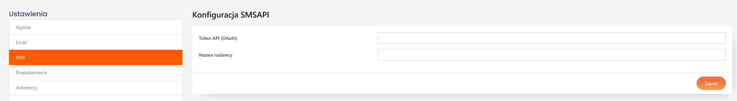 Po uzyskaniu tokenu API należy wporwadzić go w pole "Token API (OAuth)" oraz uzupełnić pole "Nazwa nadawcy".