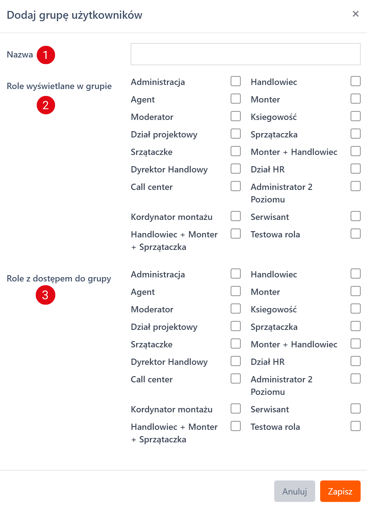- Nadania roli grupie