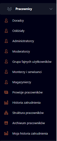 Nowo utworzona grupa będzie dostępna w panelu bocznym systemu w zakładce "Pracownicy".