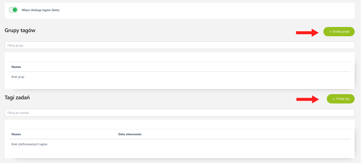 Aby dodać tagi w systemie, należy zaznaczyć checkbox - Włącz obsługę tagów (beta).