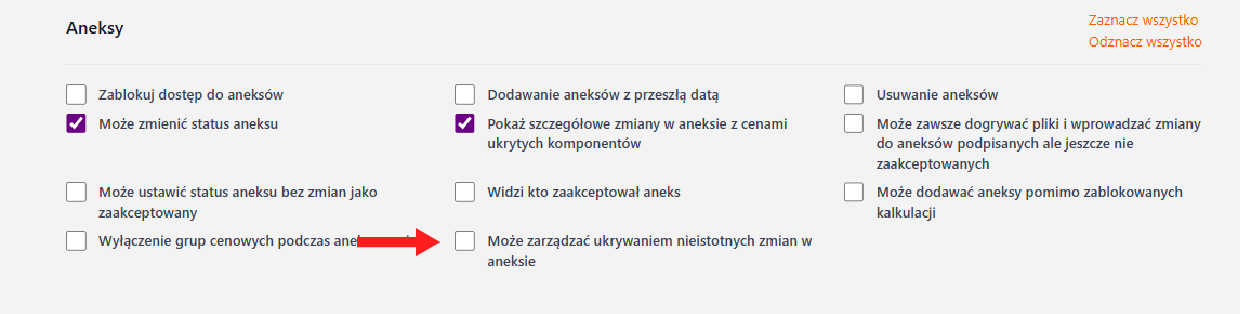 Ukrywanie nieistotnych zmian w aneksach
