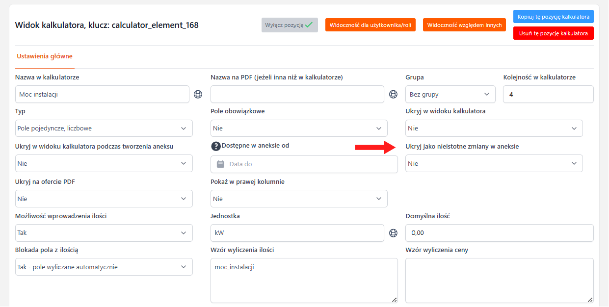 Dodano nową opcję w elementach kalkulatora: Ukryj jako nieistotne zmiany w aneksie.