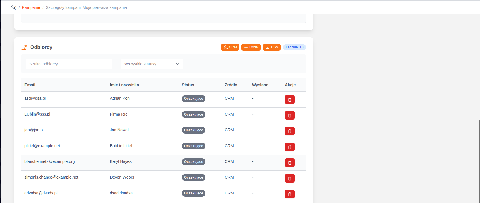 Po zdefiniowaniu odbiorców możliwe jest ustawienie terminu rozpoczęcia kampanii i zmiana statusu na Zaplanowana - sygnał dla systemu do uruchomienia wysyłki.