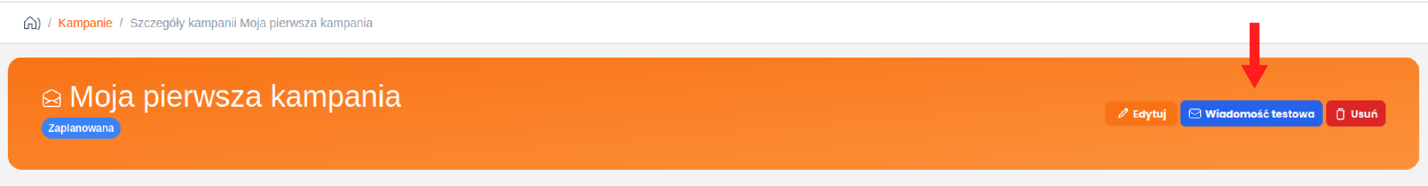 Przed uruchomieniem kampanii dostępna jest wysyłka testowa, która trafia na adres e-mail aktualnie zalogowanego użytkownika. Dzięki temu możliwe jest sprawdzenie wyglądu i treści wiadomości przed jej wysłaniem do klientów.
