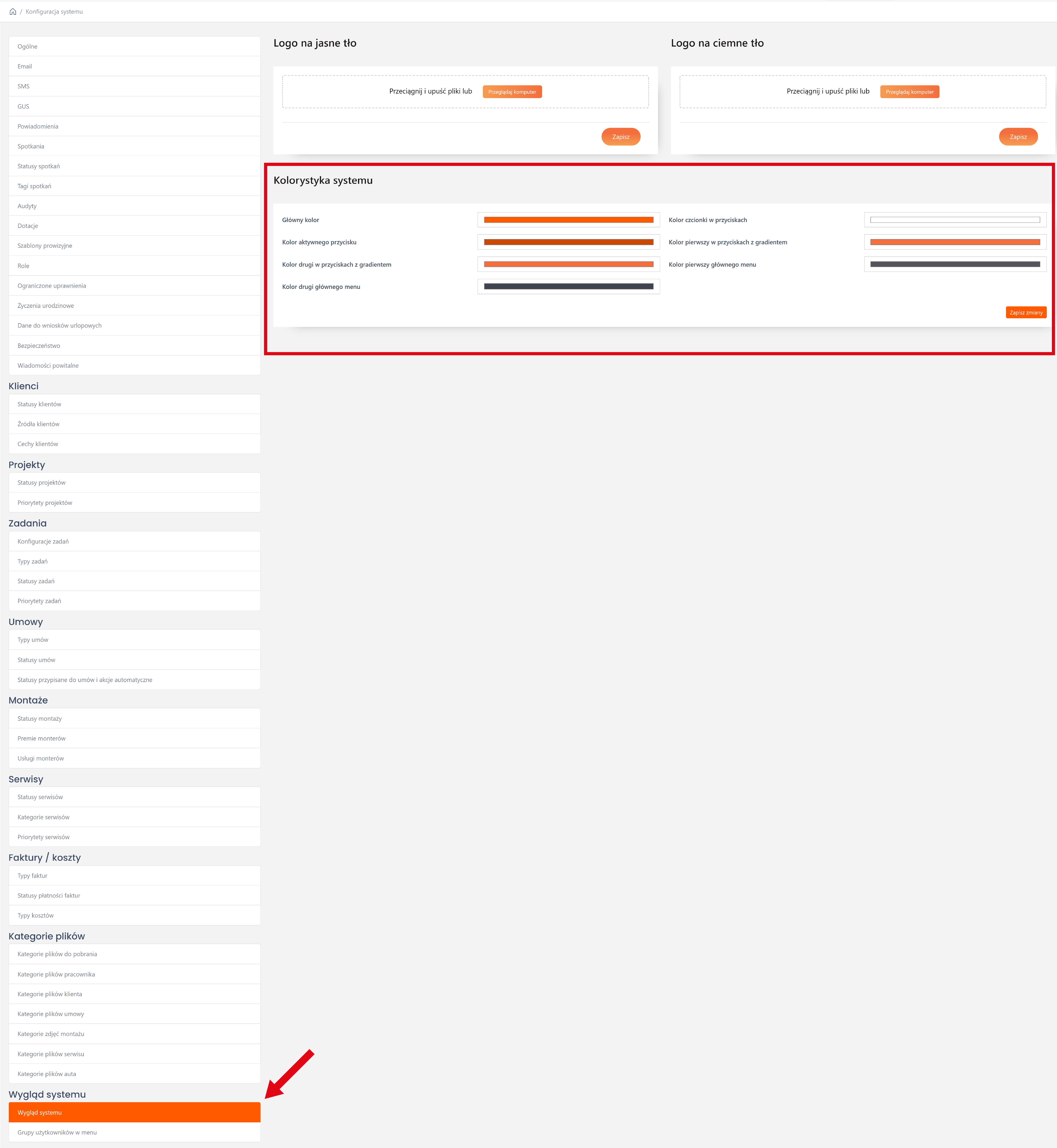 Moduł "Kolorystyka systemu" oferuje administratorom możliwość spersonalizowania wyglądu swojego systemu CRM.