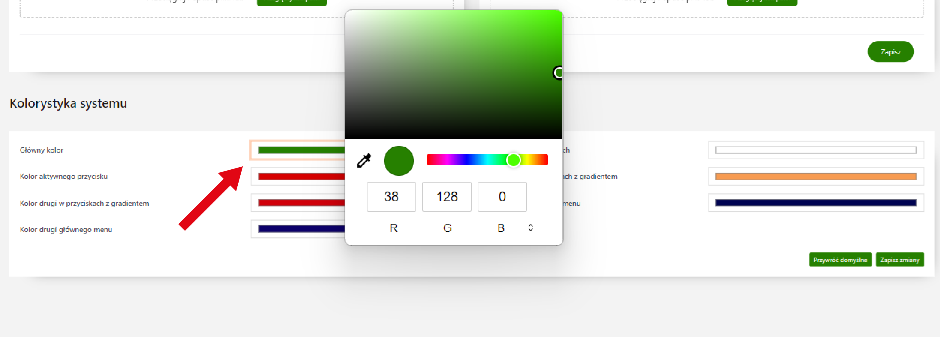 Moduł "Kolorystyka systemu" oferuje szeroki zakres możliwości personalizacji, obejmujących między innymi:
