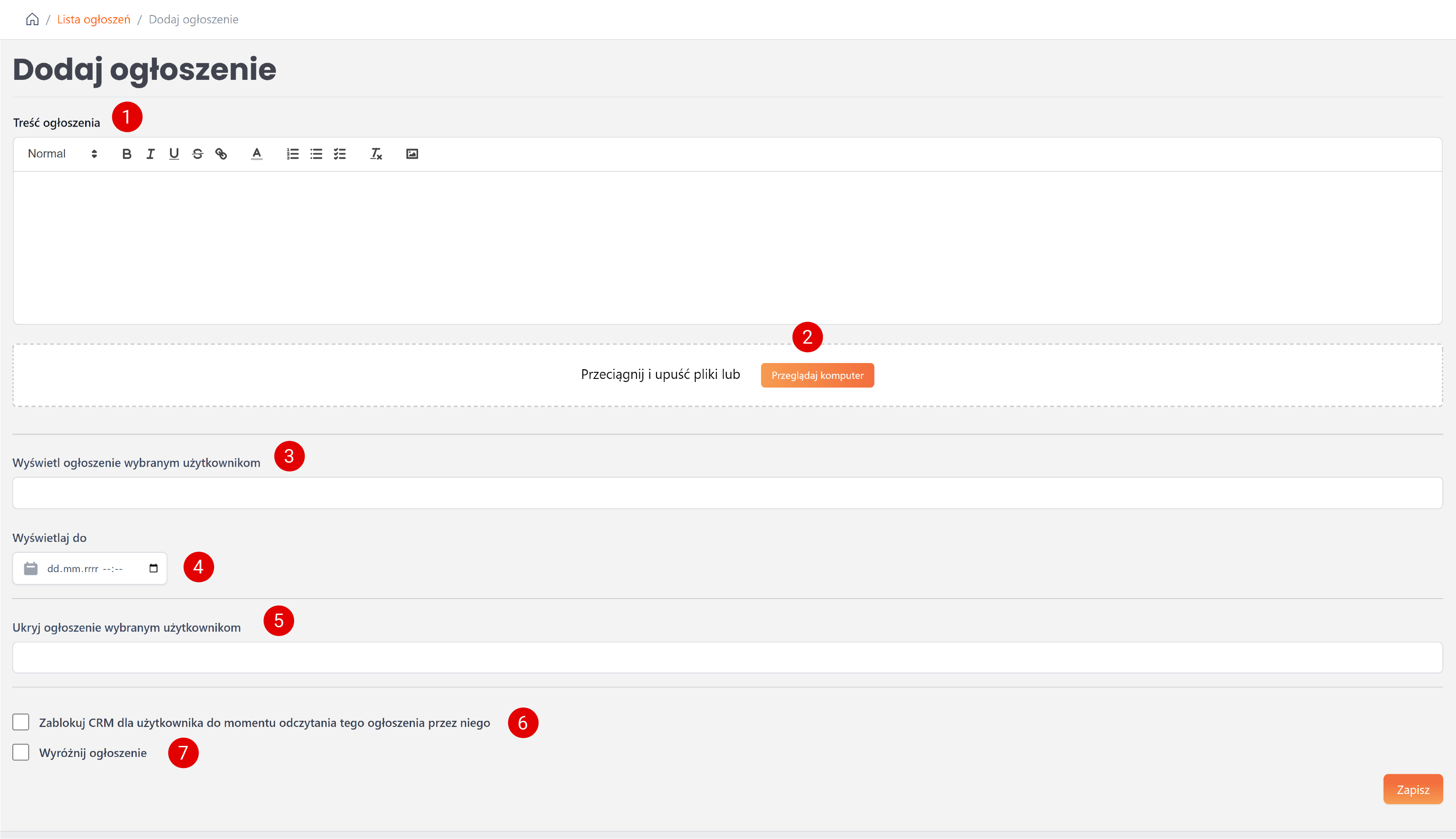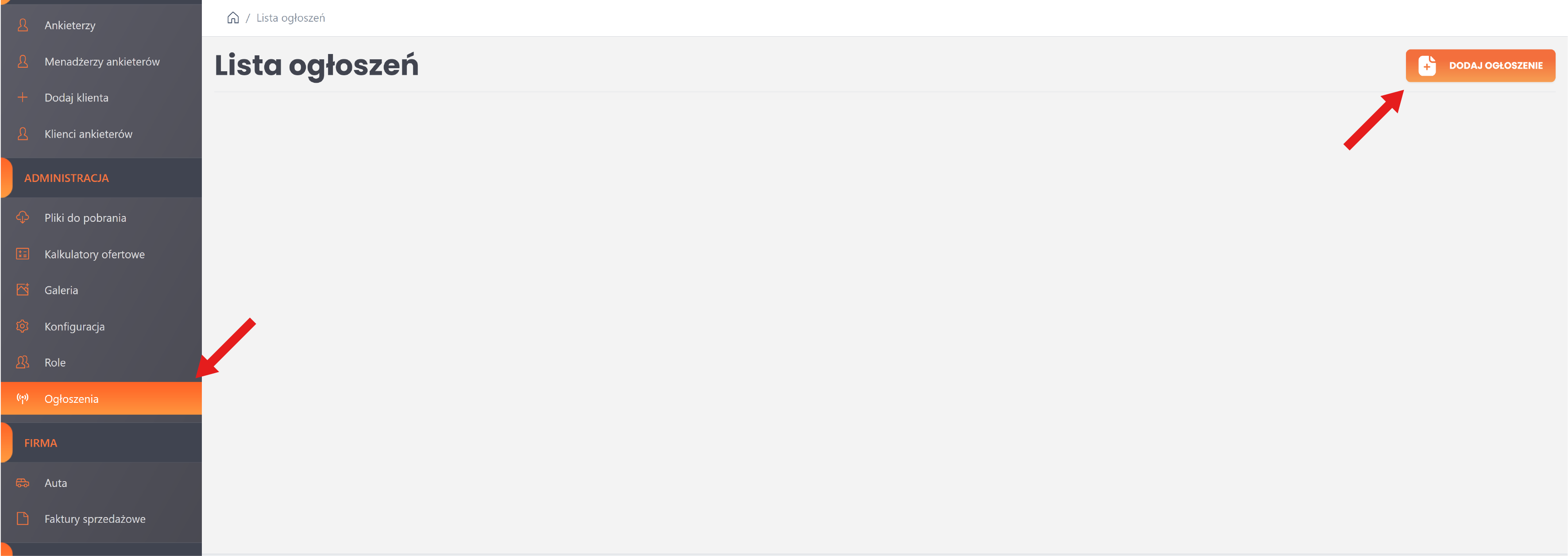 Moduł "Ogłoszenia" w systemie CRM umożliwia użytkownikom publikowanie, zarządzanie i śledzenie ogłoszeń.
