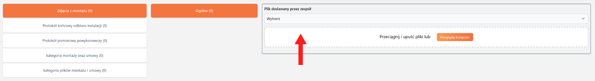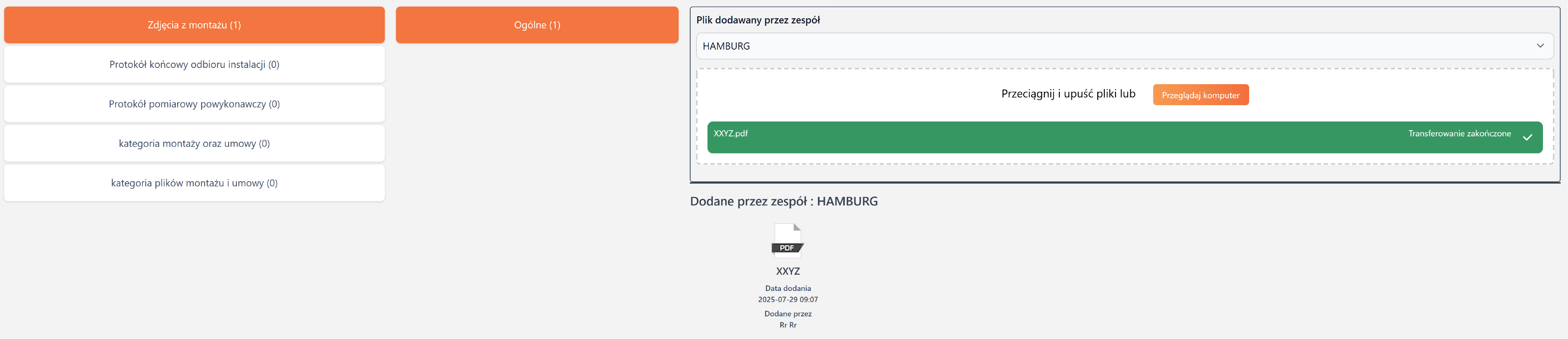 Po zakończeniu przesyłania pliku, system wyświetli w górnej części widoku informację wskazującą zespół monterów.