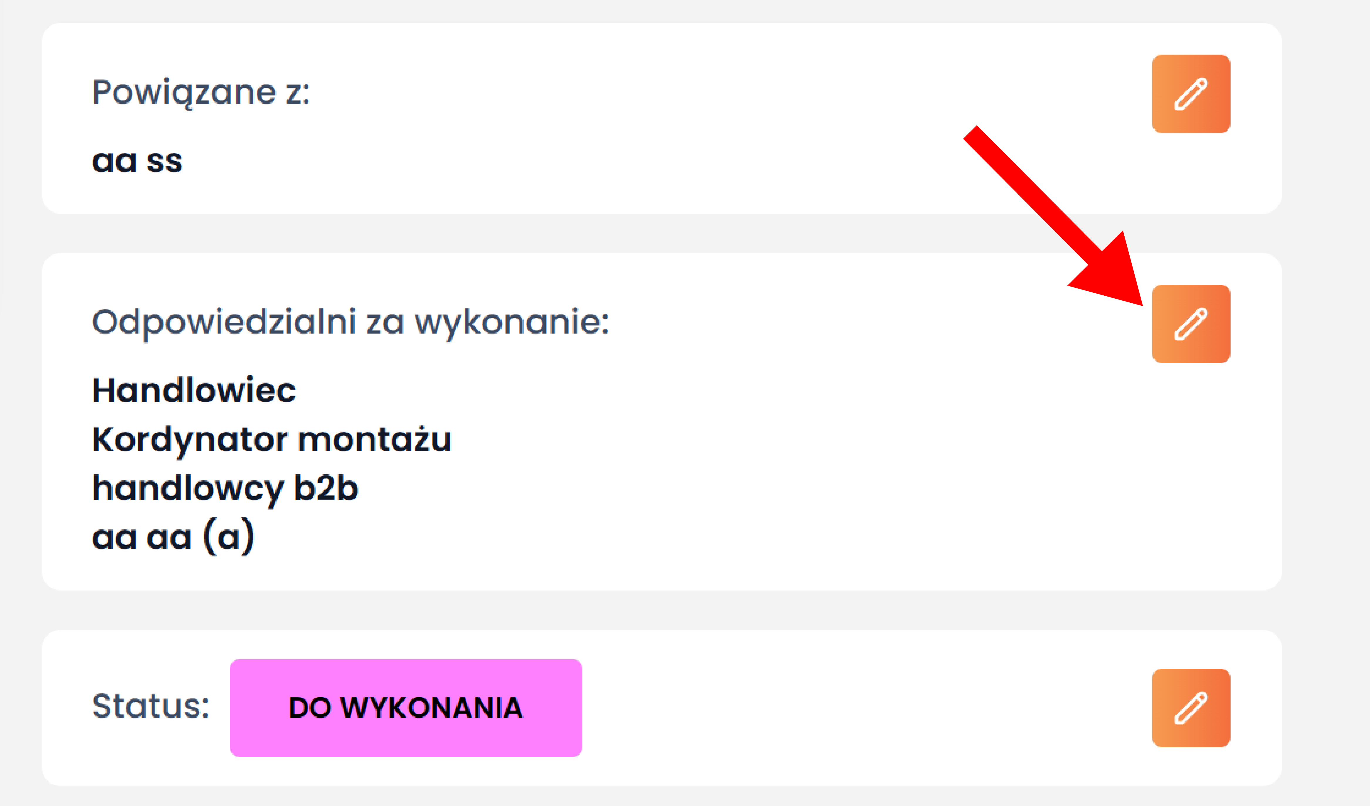 Wchodząc w szczegóły zadania możemy przejść do edycji Odpowiedzialni za wykonanie:
