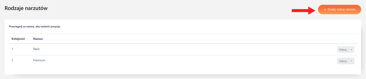 Aby dodać nowy rodzaj narzutu, należy kliknąć "+ Dodaj rodzaj narzutu".