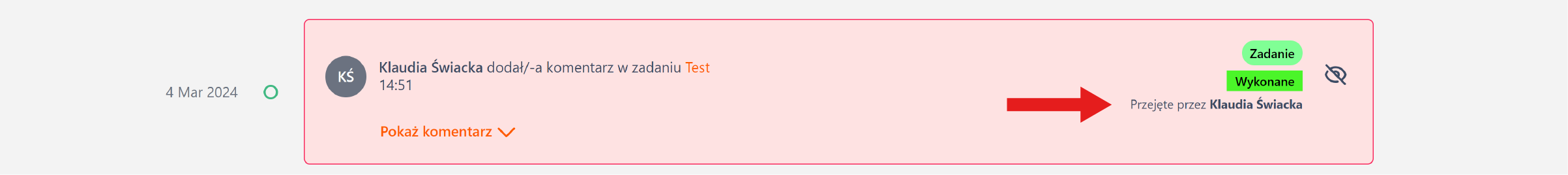 - Widzi kto kliknął przycisk przejęcia zadania