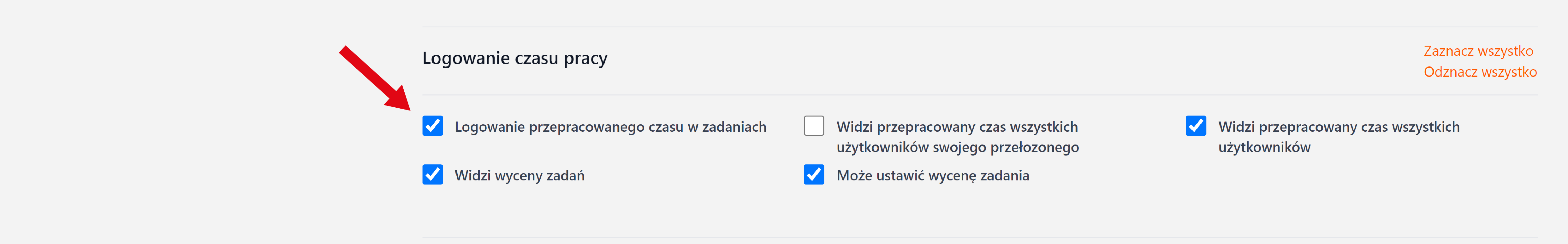 Osoby posiadające uprawnienie "Logowanie przepracowanego czasu w zadaniach"