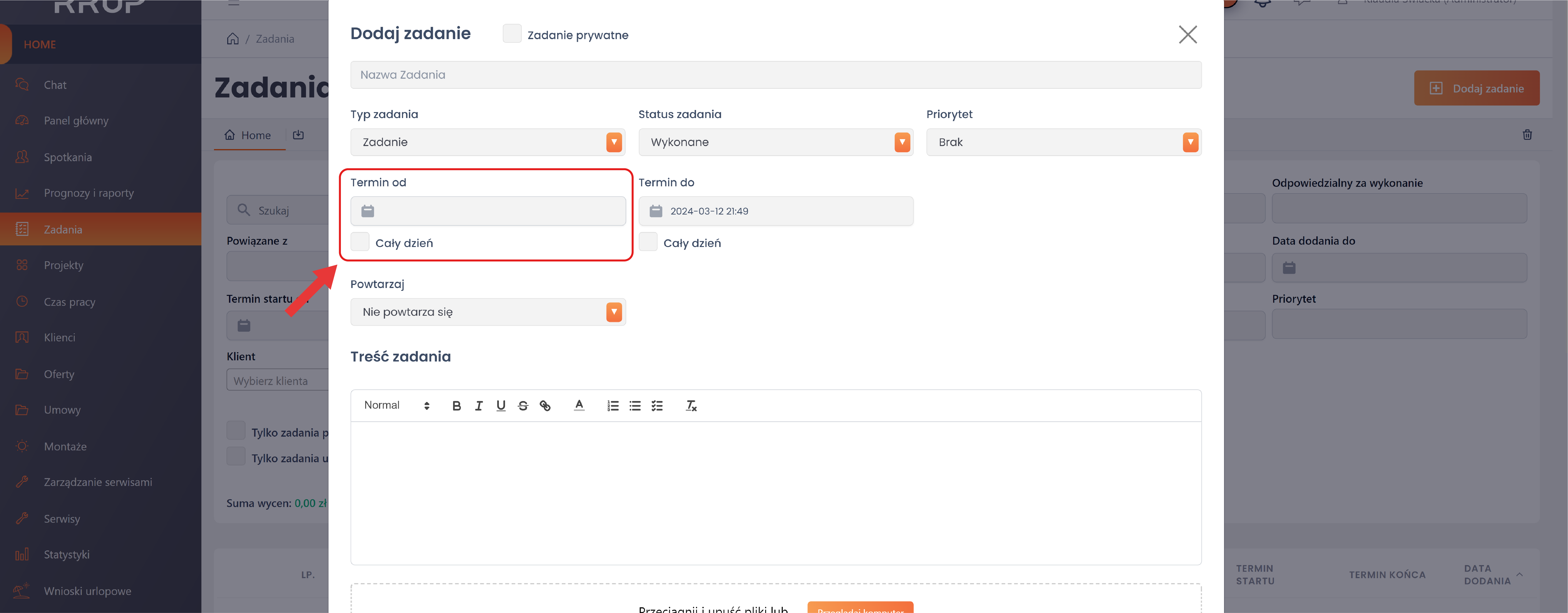 Moduł "Termin zadania OD" w CRM wprowadza nową funkcjonalność, która umożliwia jeszcze bardziej precyzyjne planowanie zadań.